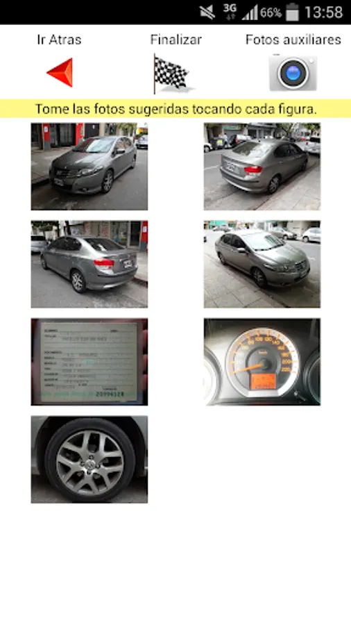 You must upload basic vehicle data, take the photos from the same application, and once finished, it will automatically be sent to our company, where it will be forwarded to your company on a regular basis.