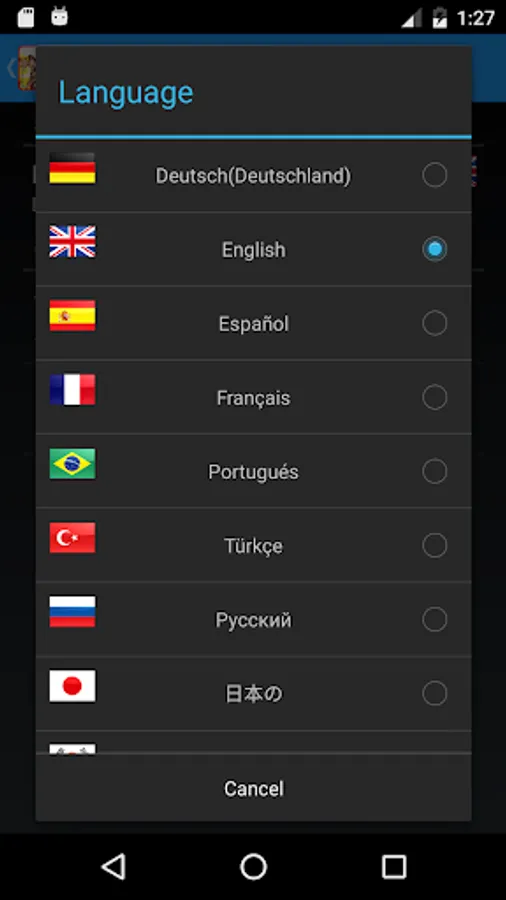 The application provides several language supports (English / German / French / Russian / Portuguese / Japanese / Korean / Turkish / Spanish /Hindi).