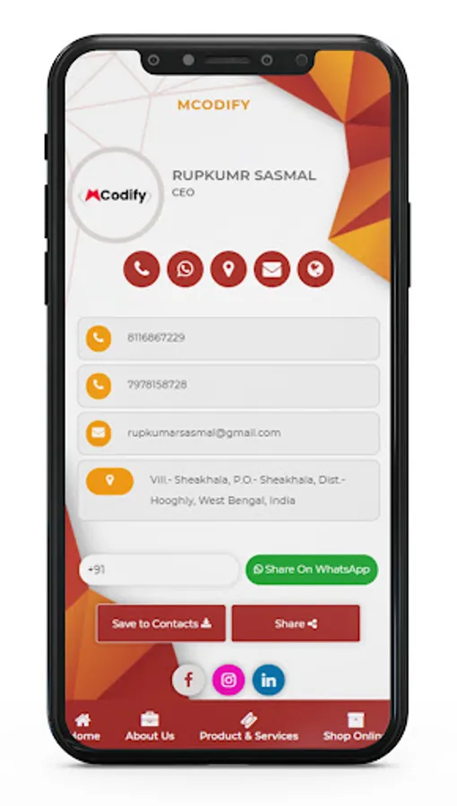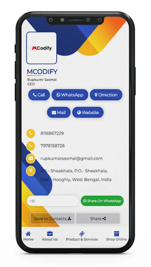 You can easily share your digital business card with anyone through the mail, WhatsApp, text message, etc...