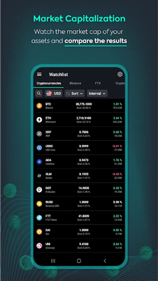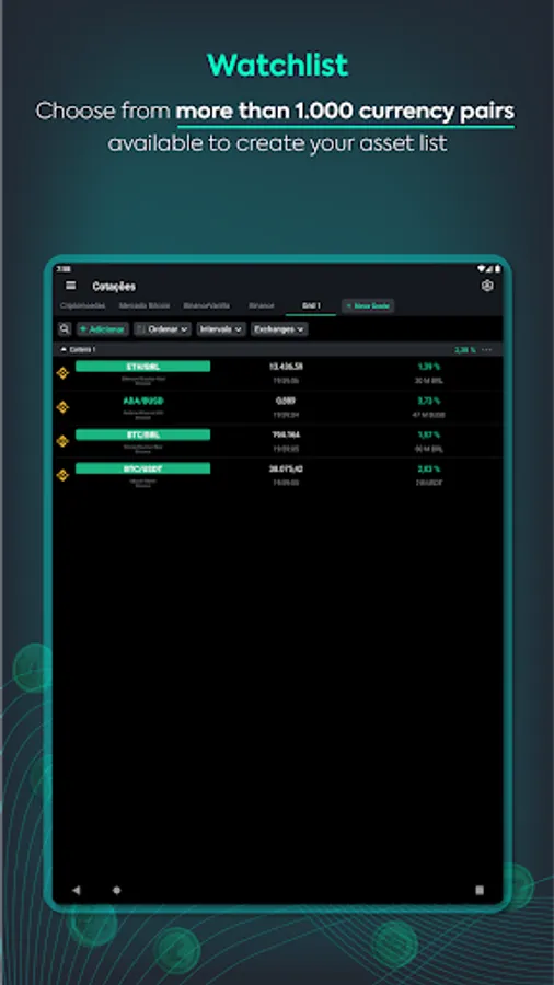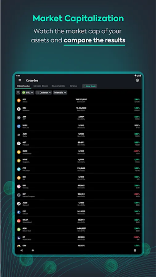 • Get a full list of cryptocurrency pairs available on the main exchanges, and stay up to date with the market capitalization of the main crypto assets.