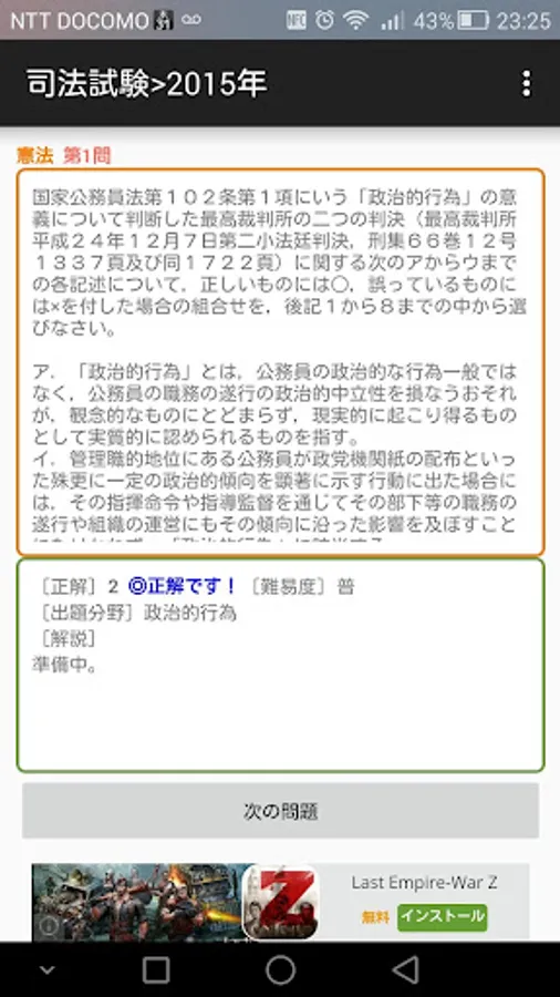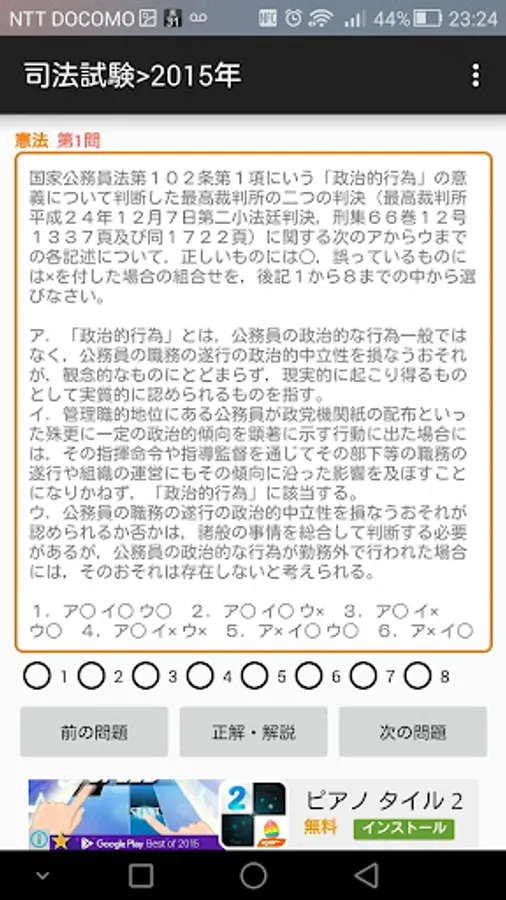 App was recorded correct the past questions of the problem of short-answer type test of judicial test and preliminary test (alternative test). Commentary also can be purchased in-app billing. In my rule of thumb, an alternative of the judicial test, rather than practice in the limb by the formula, solve the past questions is in the form close to production is I think the best. Therefore, in the present application, we try to reproduce the past questions of alternative is basically the 5 Expert drop as faithfully as possible (for the convenience of the program, one to one "correct the pick two" and "correct, for alternative problem of a special form, such as attaching a 2 "to what is wrong, Yes to edit the 5-option to 8 choices).