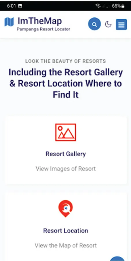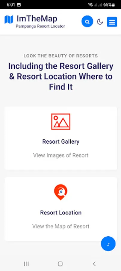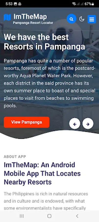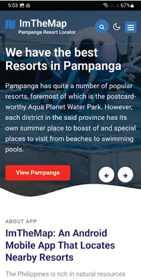 ImTheMap : An Android Mobile App That Locates Nearby Resorts Will help you to locate resorts covered by 1st District of Pampanga.