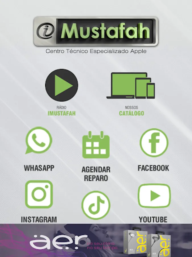 In the application you find everything about iMustafah, radio, online agenda (where you can schedule day and time for repairs on your handsets), knows the Apple products and stays within all promotions and news.