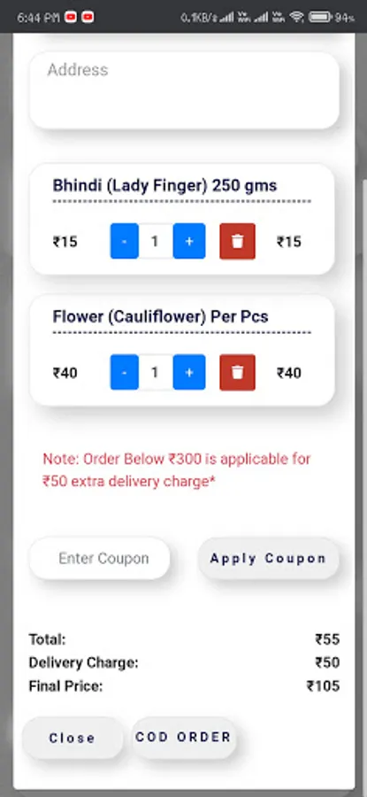 This is a best android app to place order online for vegetables. A Store owner can manage his orders on his finger tips from any were in the world and track all his staffs from the application.