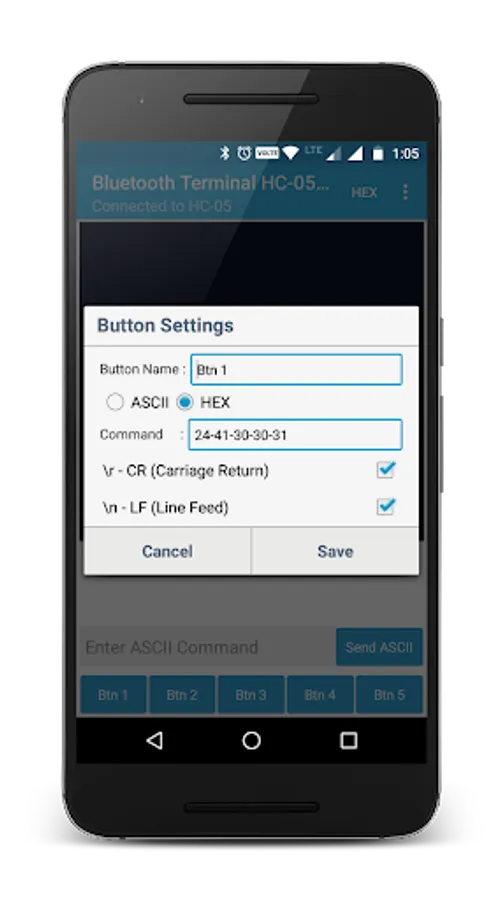 - By default, rn will be sent on every sending data and It can be changed from long pressing of particular Button.