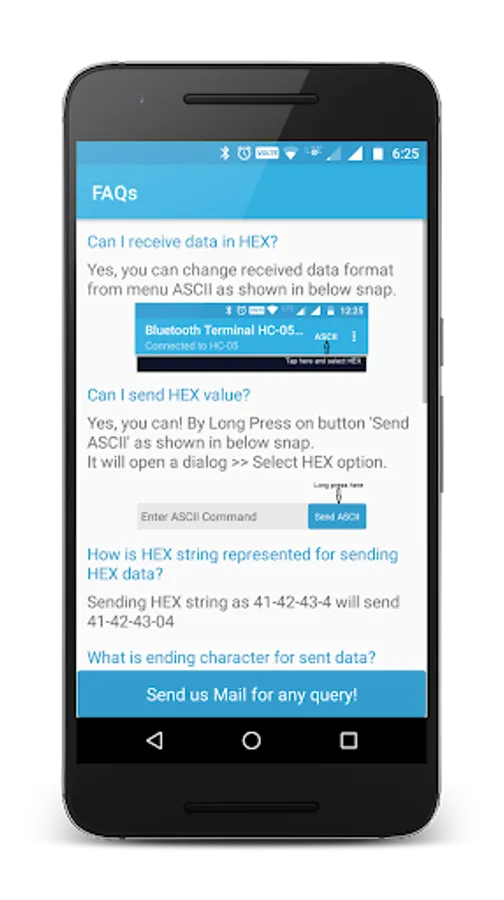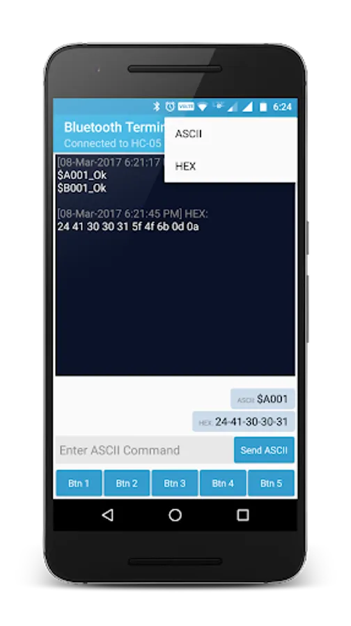 - By default, Data sent in ASCII format and It can be changed from long pressing of particular Button.