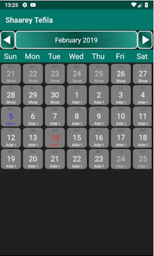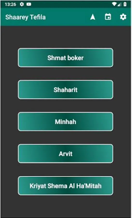 Jewish calendar with prayer times (zmanim) according to the current location of the device based on GPS coordinates