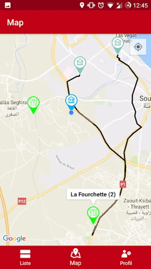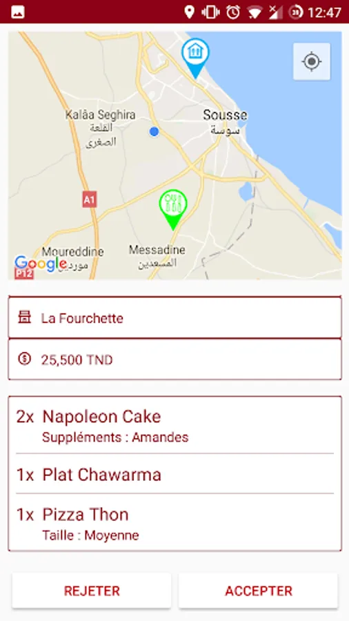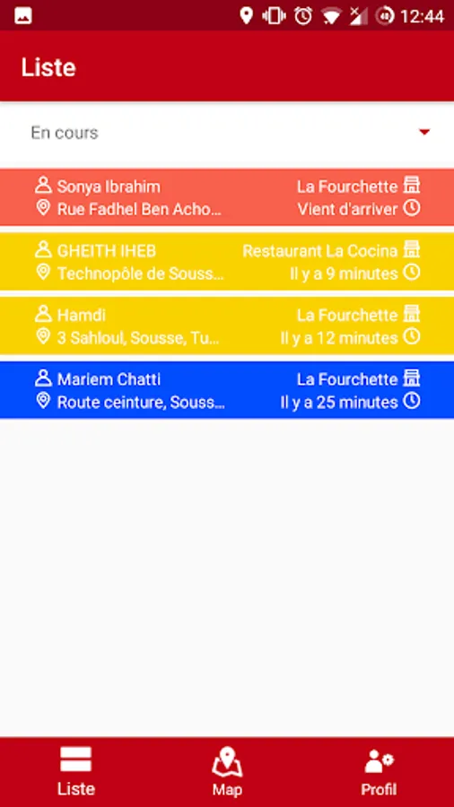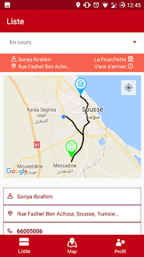 - The assigned orders can be displayed as a list or inside a google map view.