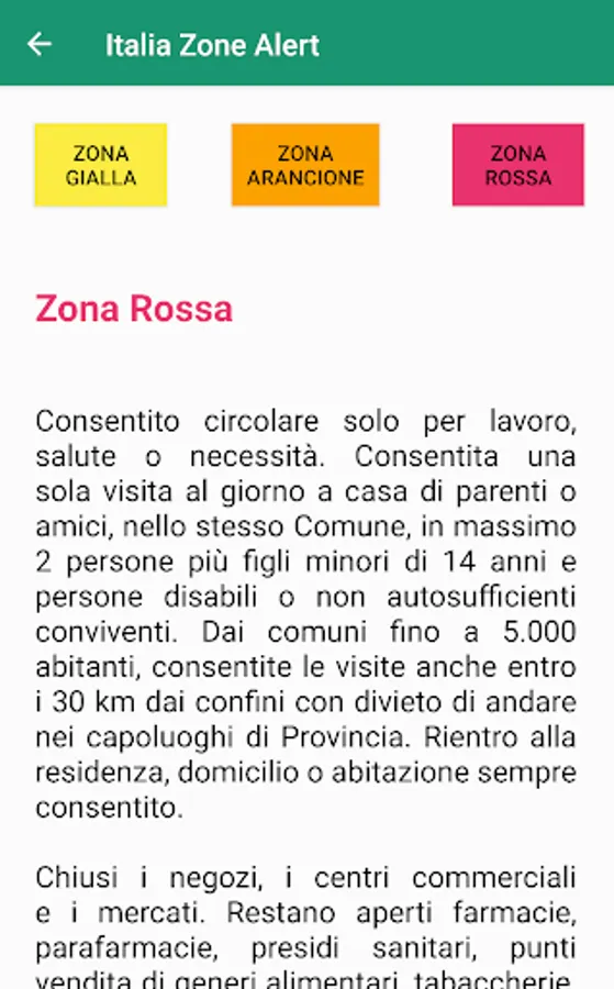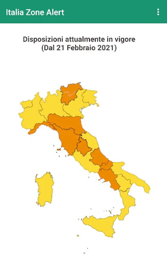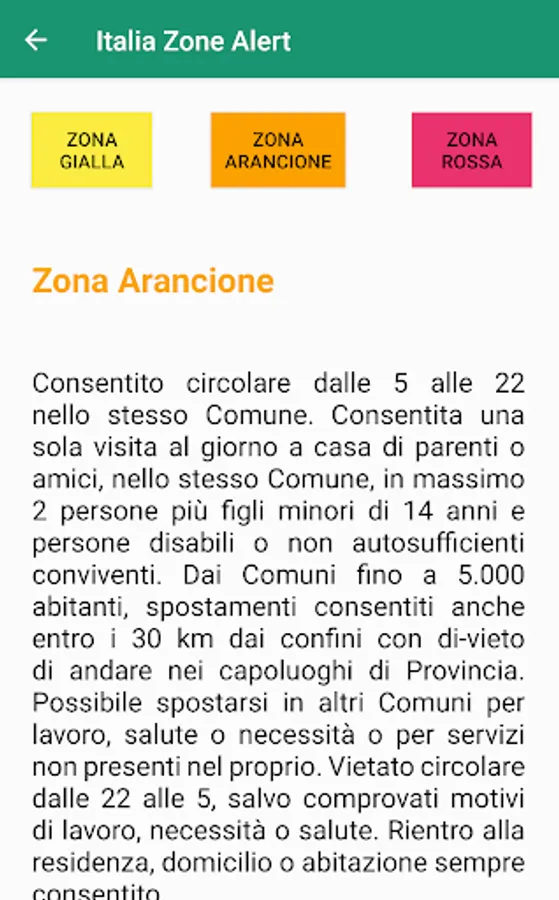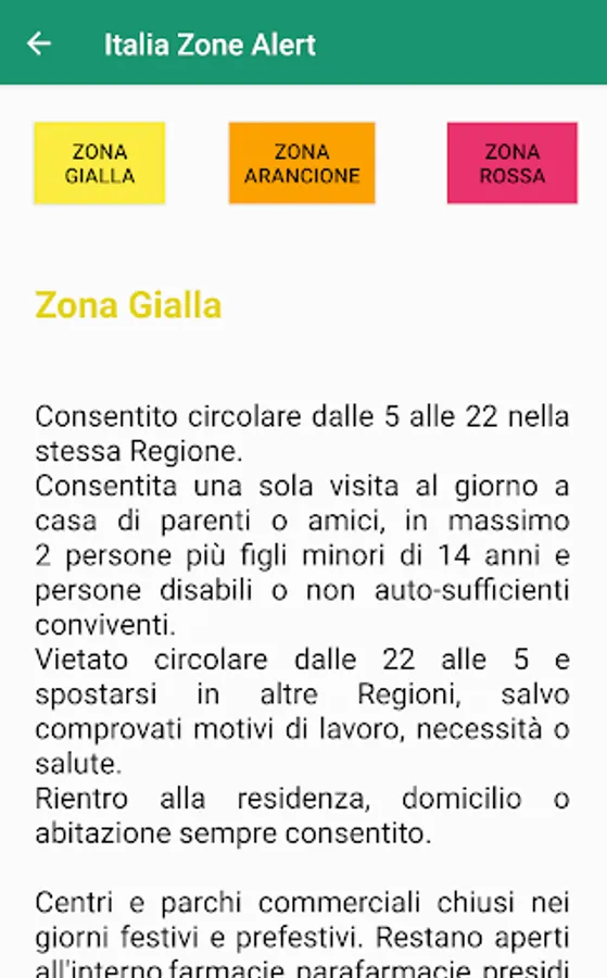 From today thanks to Italia Zone Alert you can always be up-to-date with the provisions currently in force and know the color of your region in an easy and intuitive way. In addition, the app will provide the rules relating to yellow, orange and red in a short and concise manner.