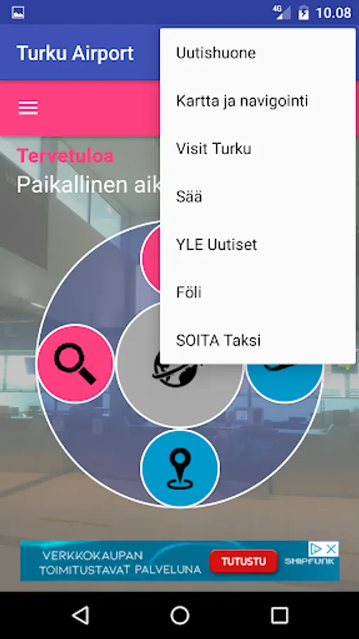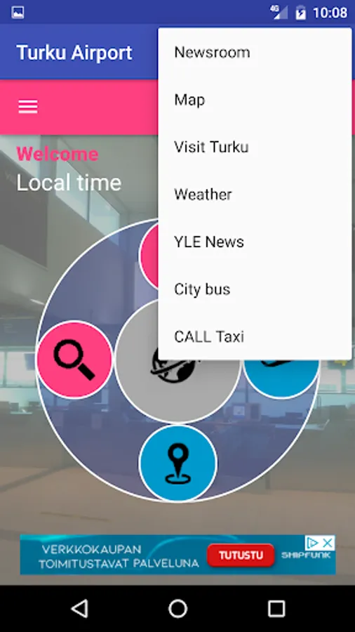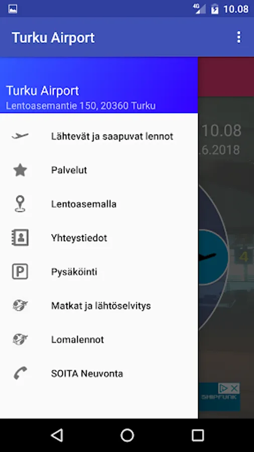 This simple application shows Turku airport arrival and departure flights, services, contact information, parking information, as well as in Turku operated by airlines and travel agencies. Flights and Travel tab, you can view and book flights and trips.