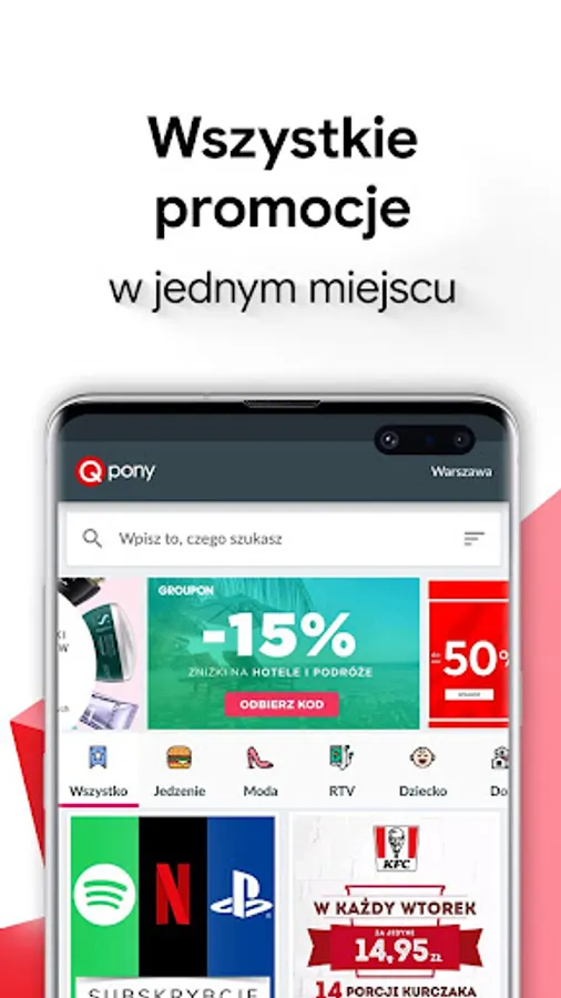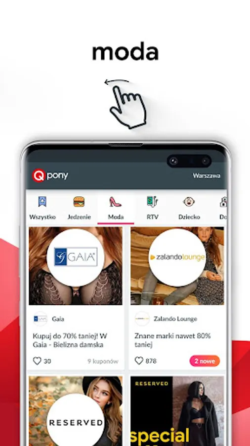 The Qpony application is completely free, requires no registration, and does not download unwanted add-ons. It allows you to use discount coupons on an ongoing basis in cinemas, restaurants, while shopping or in shopping malls, also online stores: Zalando, Zalando Lounge, bonprix, About you, Medicine, Top Secret.