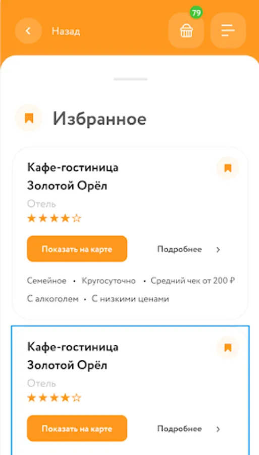 The service allows you to book parking spaces, including for large vehicles, hotel rooms, as well as takeaway dishes if such an option is available in the institution.