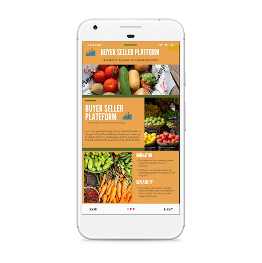 Our platform is first in India to promote organic farming which makes it innovative.Here buyers can buy organic grains by registering on platform and seller can sell the grains.