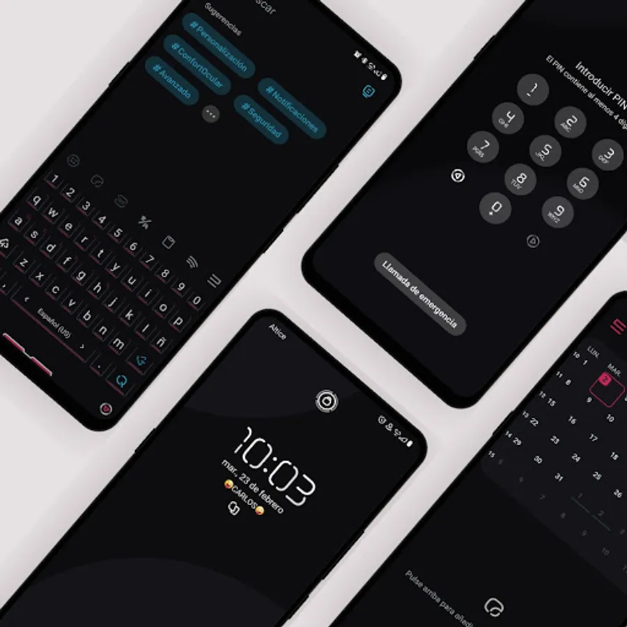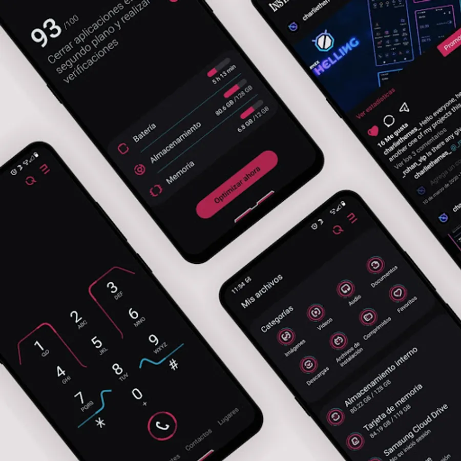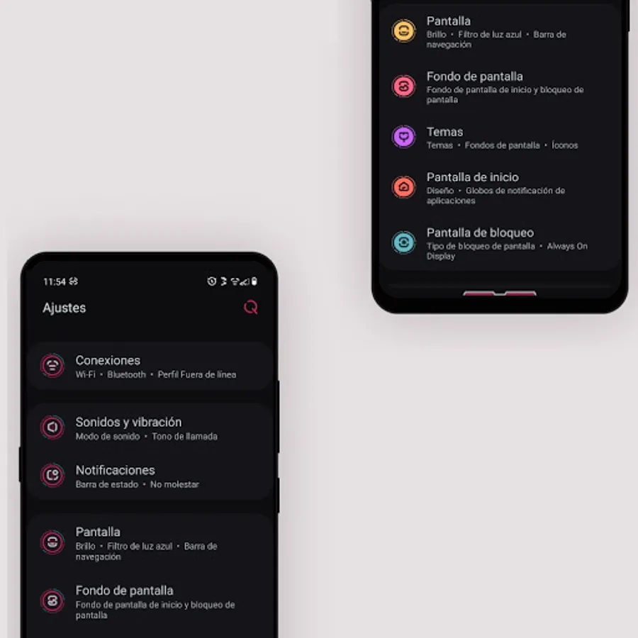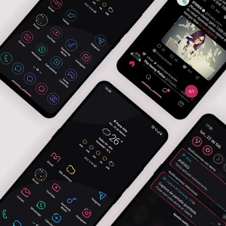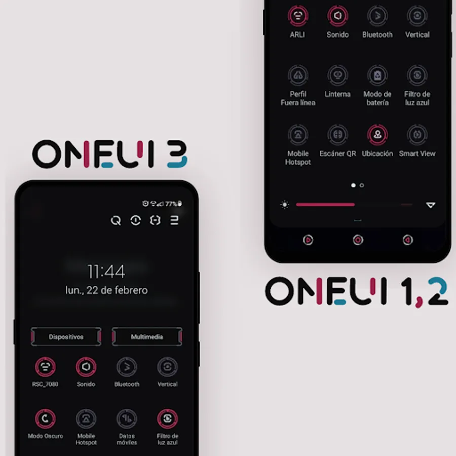 Samsung OneUI theme with colorful elements and functions for Day and Night mode.