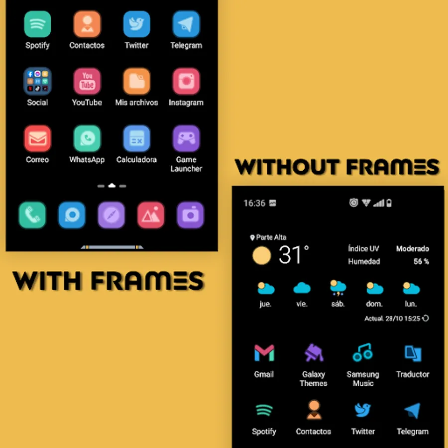 Theme Samsung OneUI skin with Homly plugin elements for both Day / Night mode.