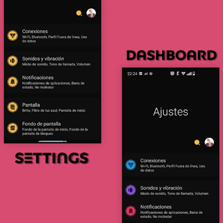• Settings dashboard icons