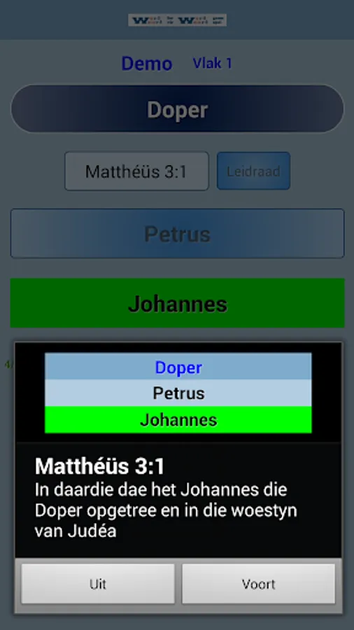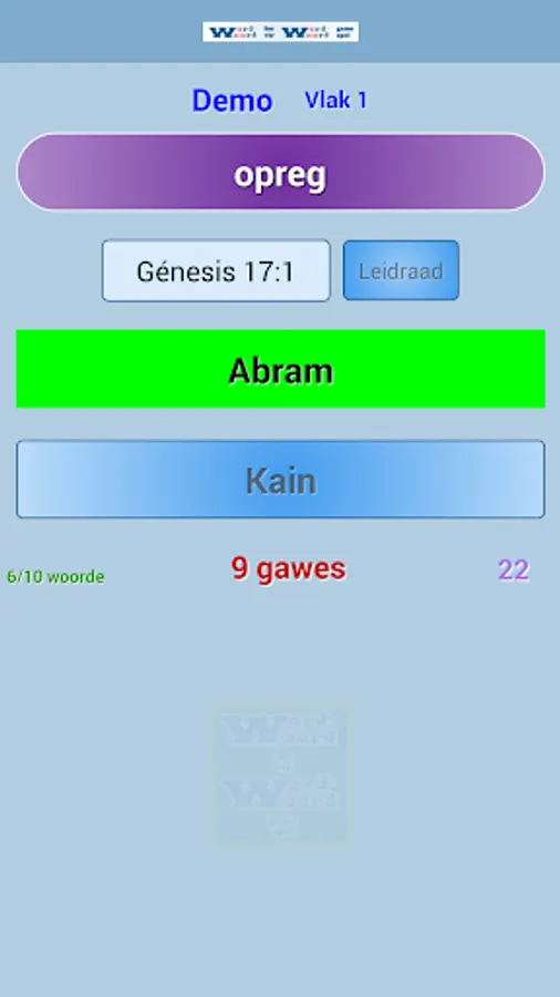 Woord vir Woord spel is 'n aflyn Bybel woord spel sonder advertensies.