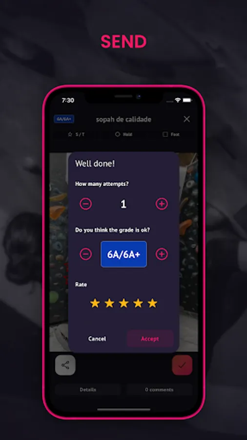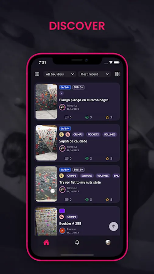 Training is more fun now!!! You just have to take a photo of the wall where the boulder you created is located, mark the holds and graduate it. Then just by saving it, it will be added to the list of problems on that wall and voila ... we can all enjoy it.