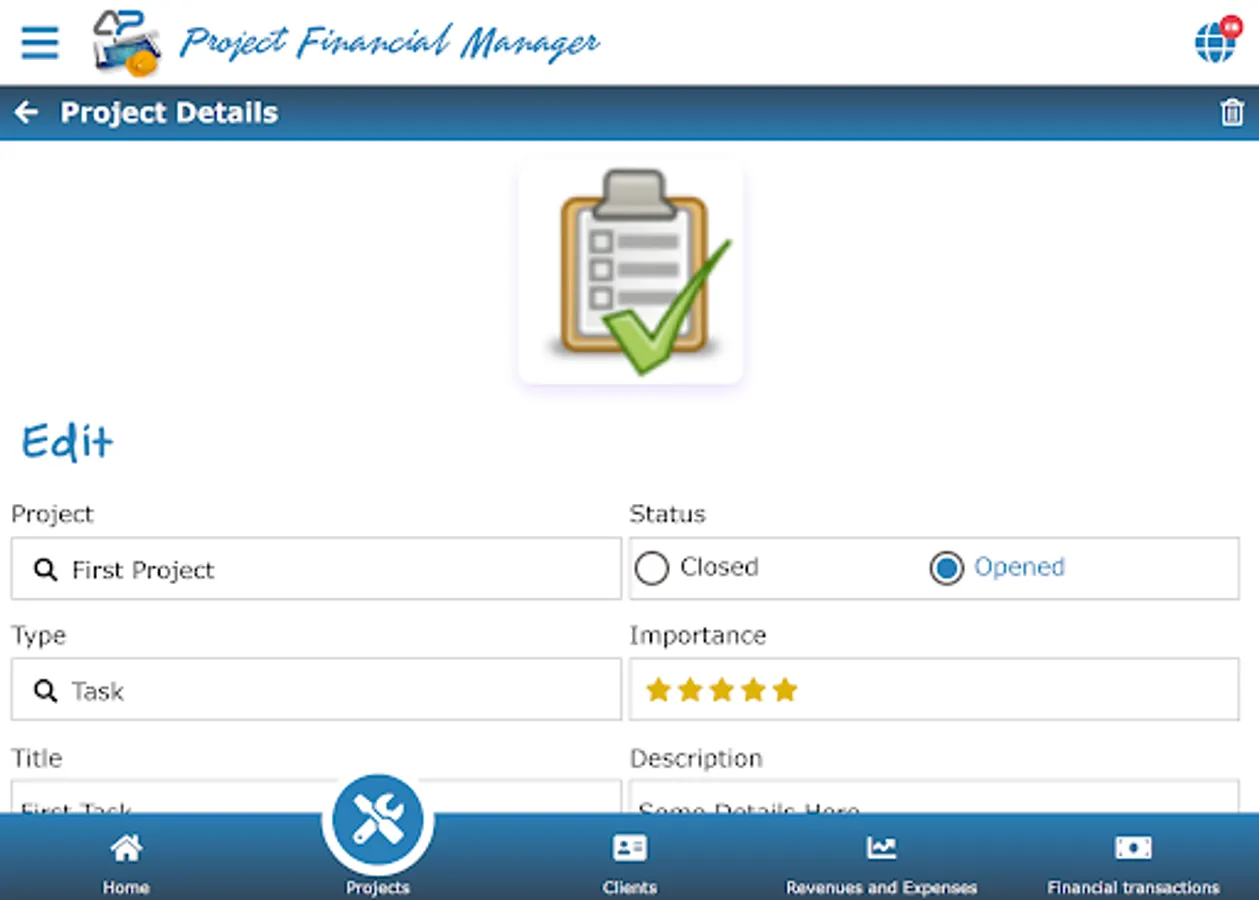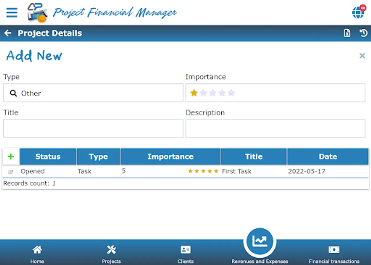 Save an image of any project details or financial documents in the system using your mobile phone camera.