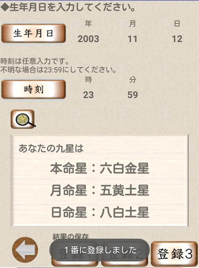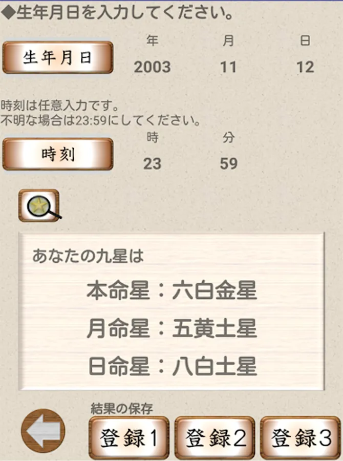 生年月日,時刻から本命星,月命星,日命星を調べることができます。