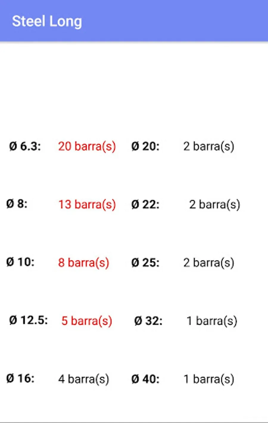 With Steellong you can determine the amount of bars of gauges of Ø6,3, Ø8,0, Ø10, Ø12,5 Ø16, Ø20, Ø22, Ø25, Ø32, Ø40, and whether or not it is within the minimum required spacing the norm.