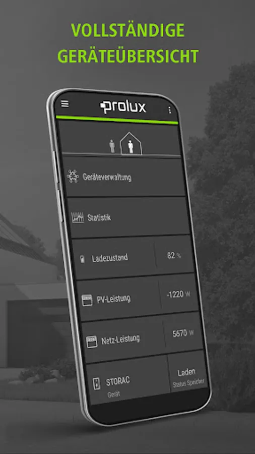 The Prolux app makes your everyday life that much more convenient. Information about your STORAC battery storage system is always to hand. Whenever you want and wherever you are - at home or on the go.