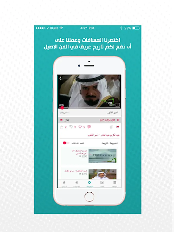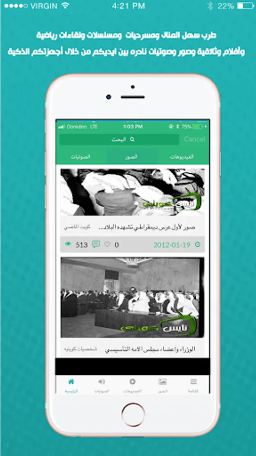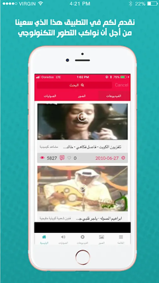 Offer you in this application which sought in order to keep up with technological development Fajtsrna distances and worked to keep you long history in the original art of mirth accessible and plays and serials, meetings, sports, movies, documentaries, pictures and audios rare in your hands through Ojhzatkm smart near you, and when we talk about Kuwait originality heritage from a long history Ntfath many doors here and there, so you may Aqthmana in this application, one of these doors and Artbtna linked closely to rule the media, both visual Ooualemsmoah Ooualemsourh here simulate the human senses in order to be his closest Ventrk imprint in the memories of the beautiful, shall be easier and easier for your hands and your eyes and your ears