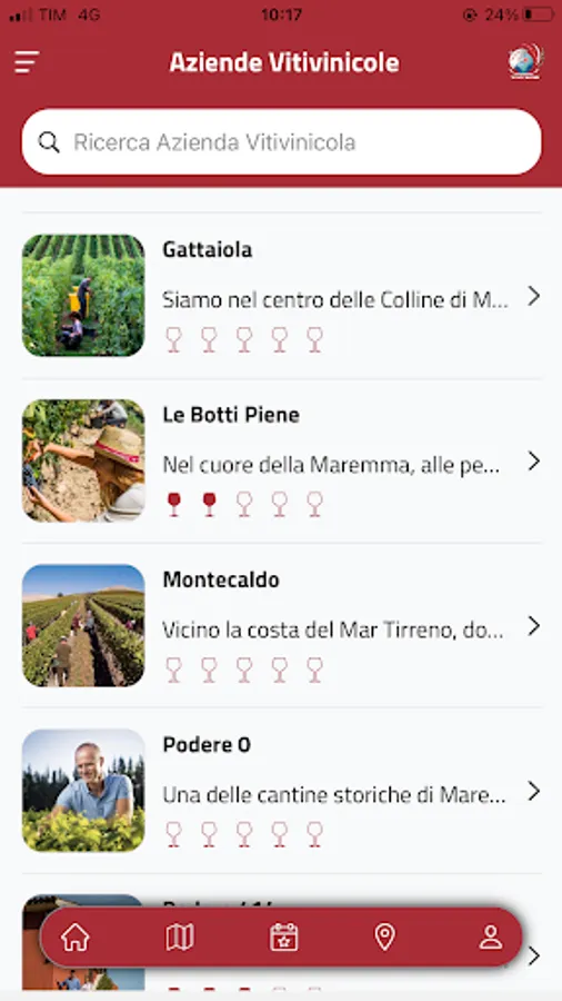 Also on the navigation bar, the 'Calendar' icon opens the page of events you can participate in, while the 'Itineraries' icon provides an overview of predefined routes on the territory.