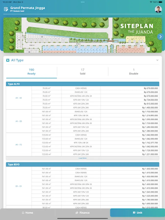 See the availability of ready units and units sold from housing. There are prices for each way of paying for ready units. Seeing the site plan of the housing of your choice makes it easier for users to see an overview of the location of the unit they will buy. Equipped with financial reports that can be monitored through mobile apps