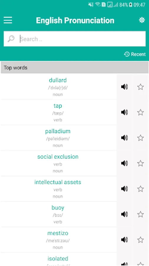- Search history to help you find recently searched for words