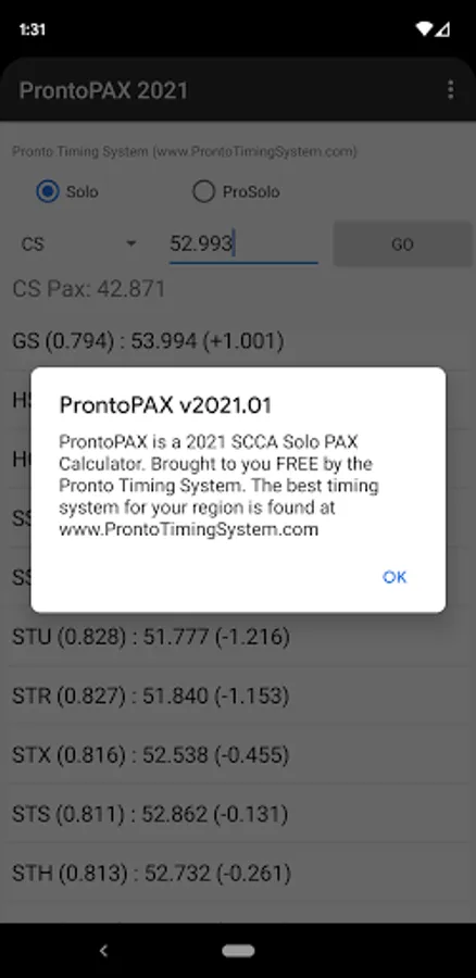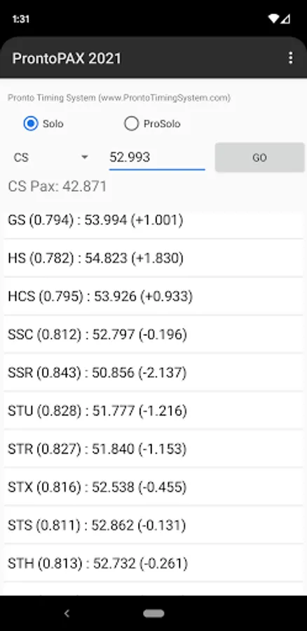 Pronto Timing System Autocross PAX Calculator is a FREE autocross PAX calculator based on the Sports Car Club of America Classes with PAX index used for Autocross and Solo Events. Now also includes the ProSolo PAX index.
