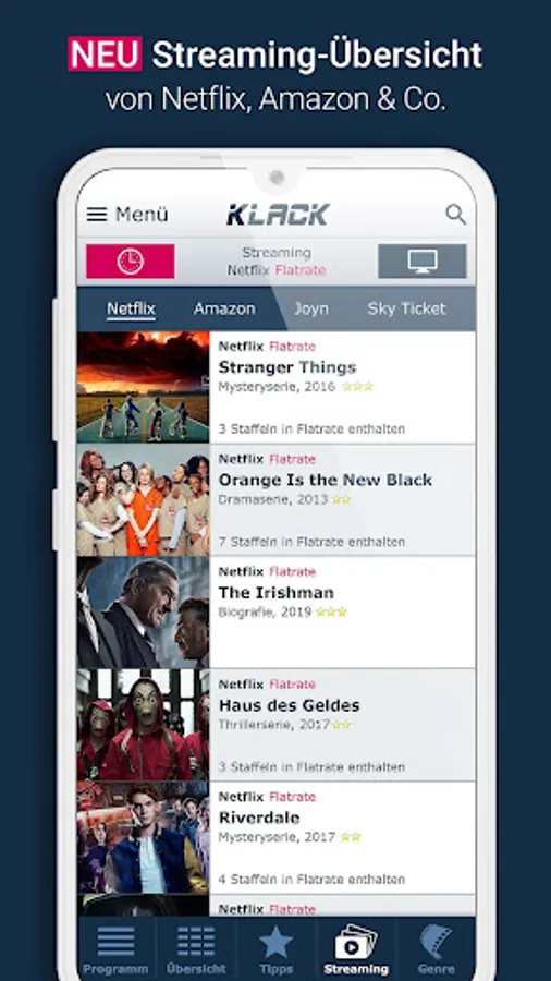 On request, you can also use KLACK without advertising for only € 0.50 a month. Even those who do not use this offer will continue to get the fastest television and TV program with all functions such as the KLACK TV planner, editorial tips and filter functions free of charge.