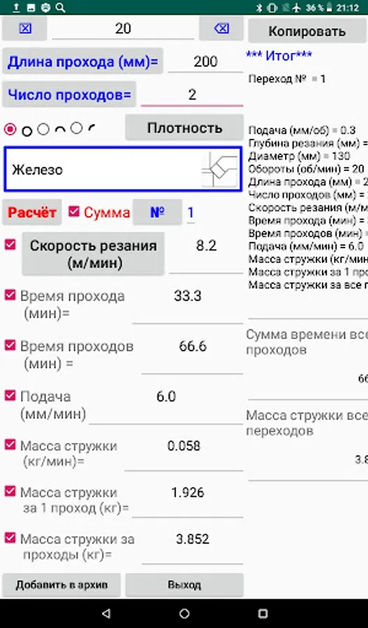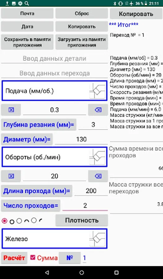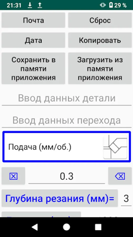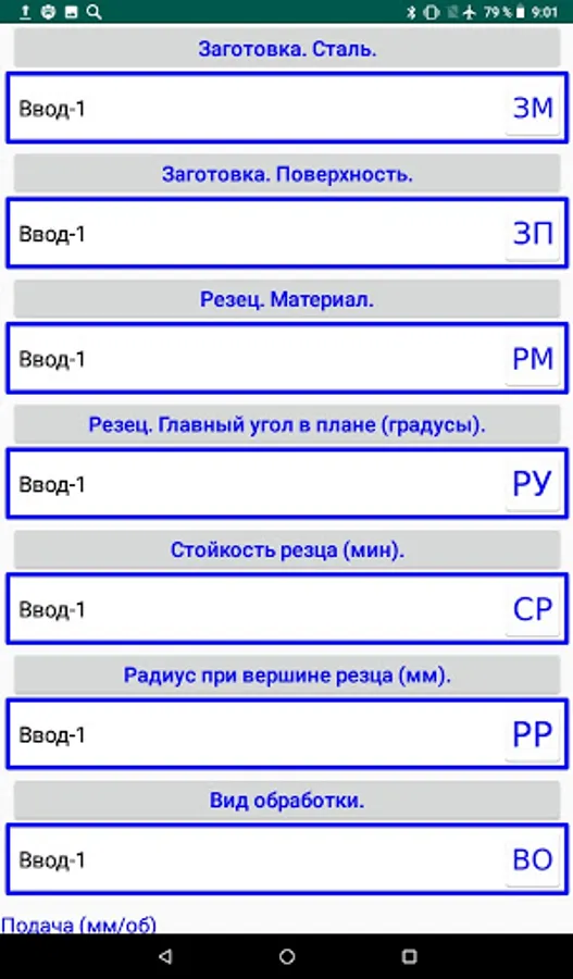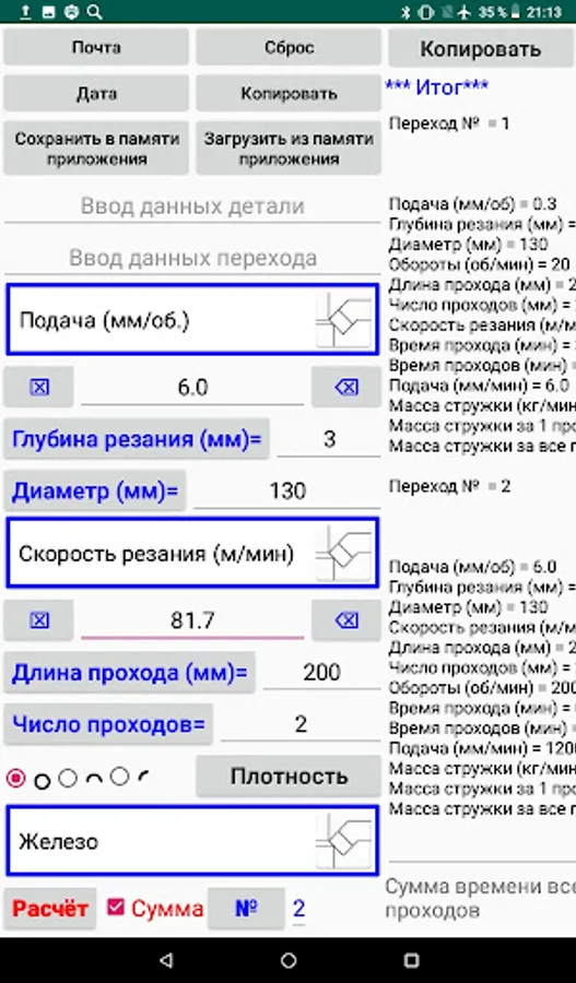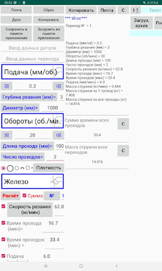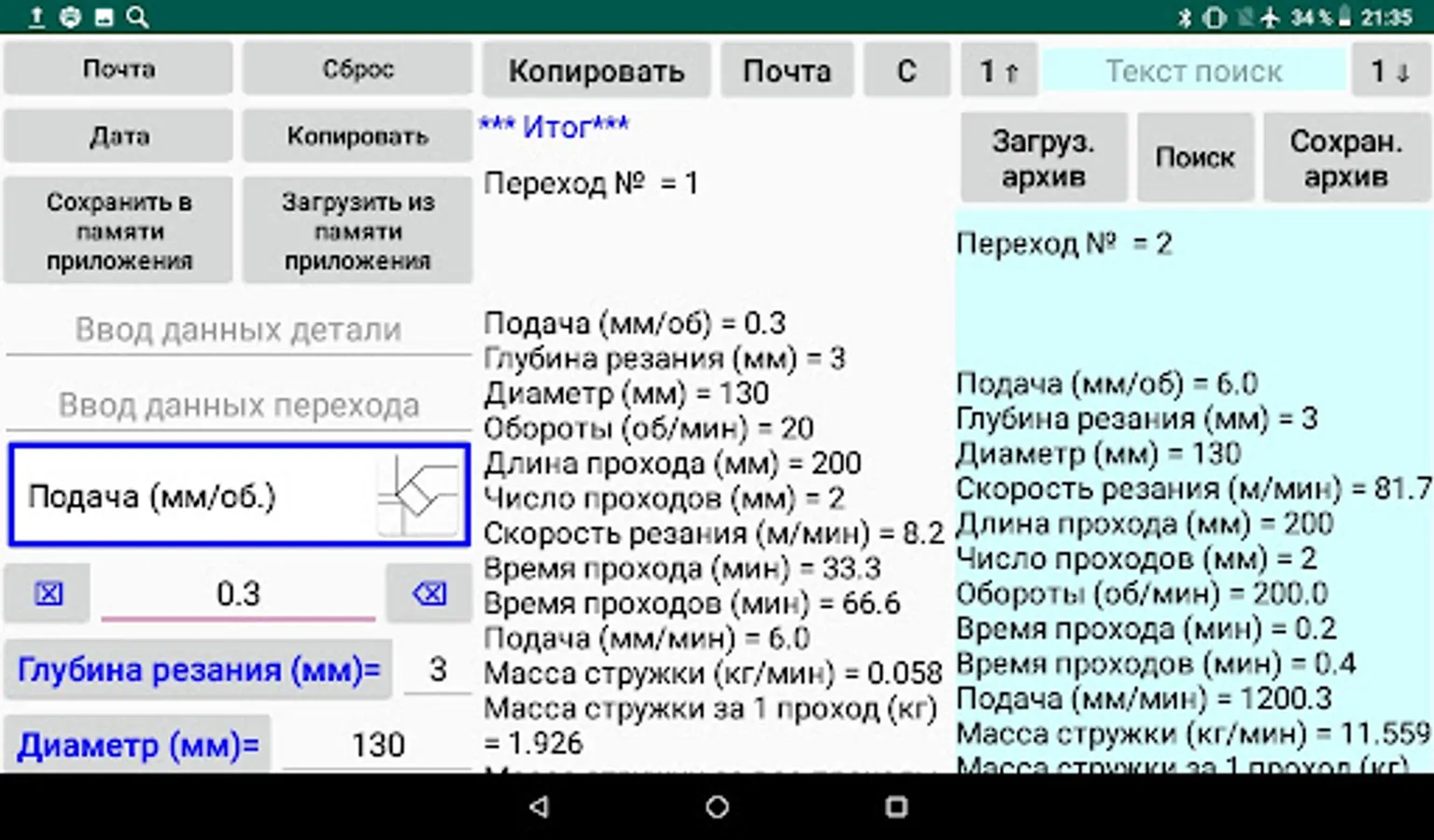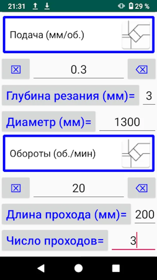 On Screen-2, the cutting speed (and revolutions when entering the outer diameter) is calculated for external longitudinal turning of structural carbon steel