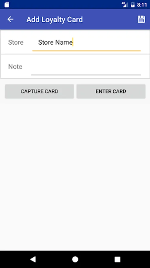 New cards can be added in a snap. Either use your camera to capture the barcode, or type in the number. When the barcode is loaded at the store and displayed it can be scanned with a modern barcode scanner. (Some stores use older barcode scanners, such as flatbed scanners, instead of image scanners. These cannot read the smartphone's display. Instead, request the clerk to type in the number manually).