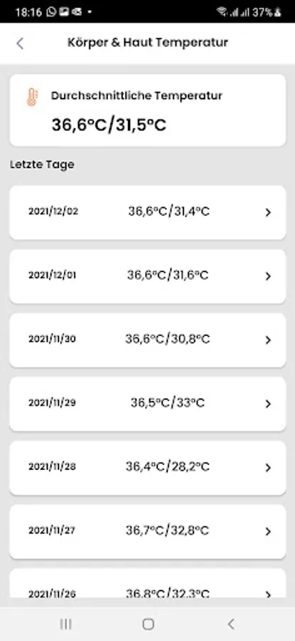 The data is automatically saved in the background by Protect.Watch on your mobile device. You can evaluate your series of measurements in diagrams at any time and are always informed about your health.