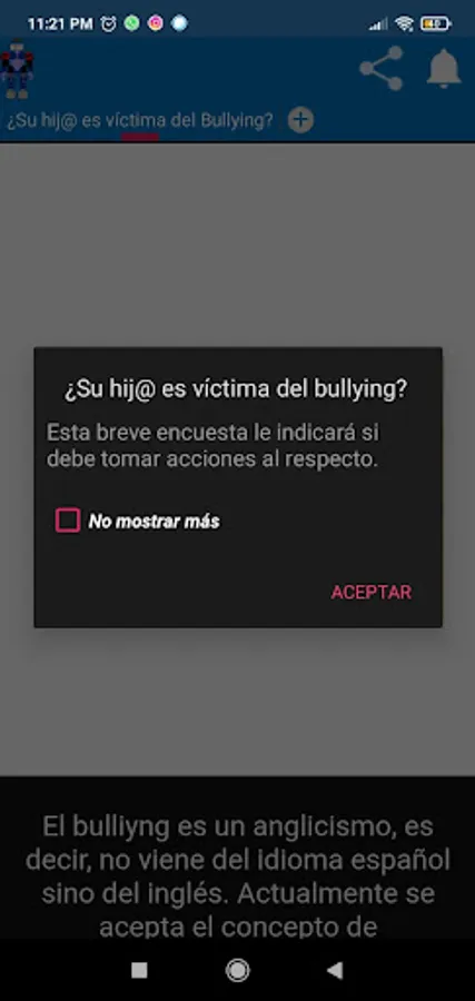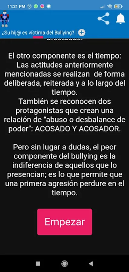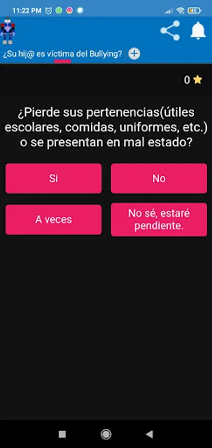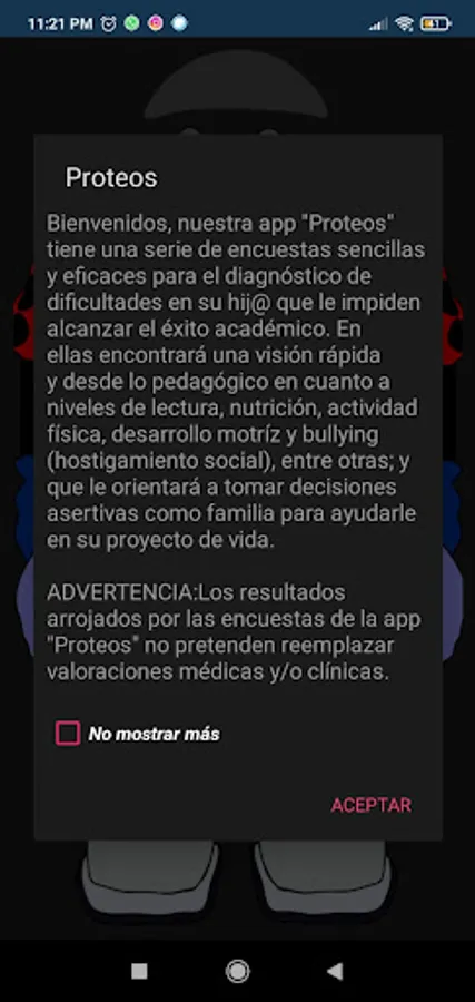 Welcome. Our app "Proteos" has a series of simple and effective surveys for the diagnosis of difficulties in your child that prevent him from achieving academic success. In them you will find a quick vision and from the pedagogical aspect in terms of reading levels, nutrition, physical activity, motor development and bullying (school bullying) among others, and that will guide you to make assertive decisions as a family to help you in your life project .