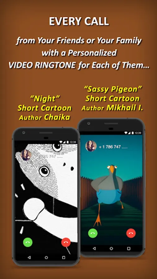 • Elija un video romántico o atmosférico, una animación del autor o una mini película para cualquier contacto.