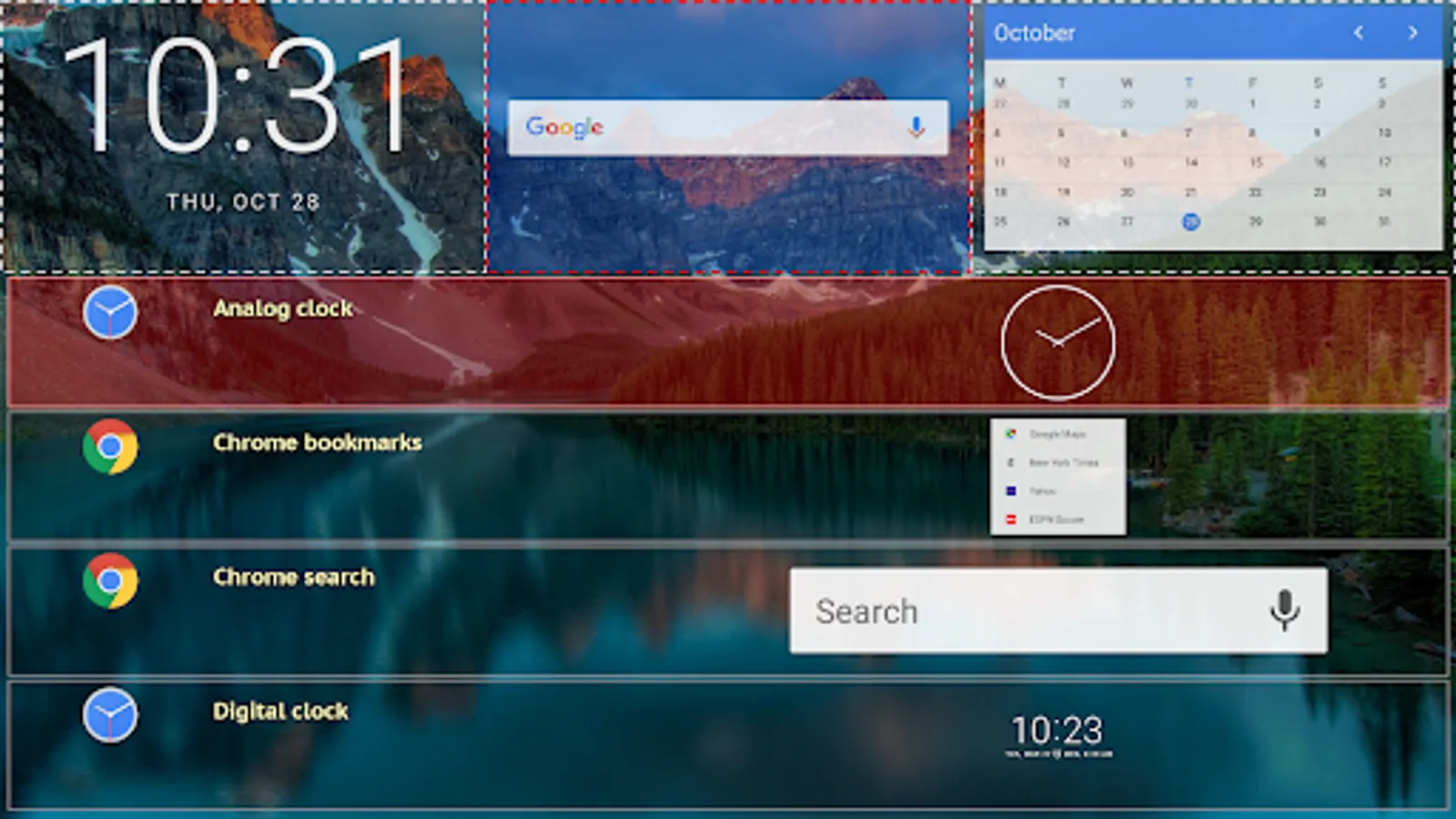 You can choose the look and layout of the icons, sort into favorites, change the wallpaper and use your favorite widgets on the screen.