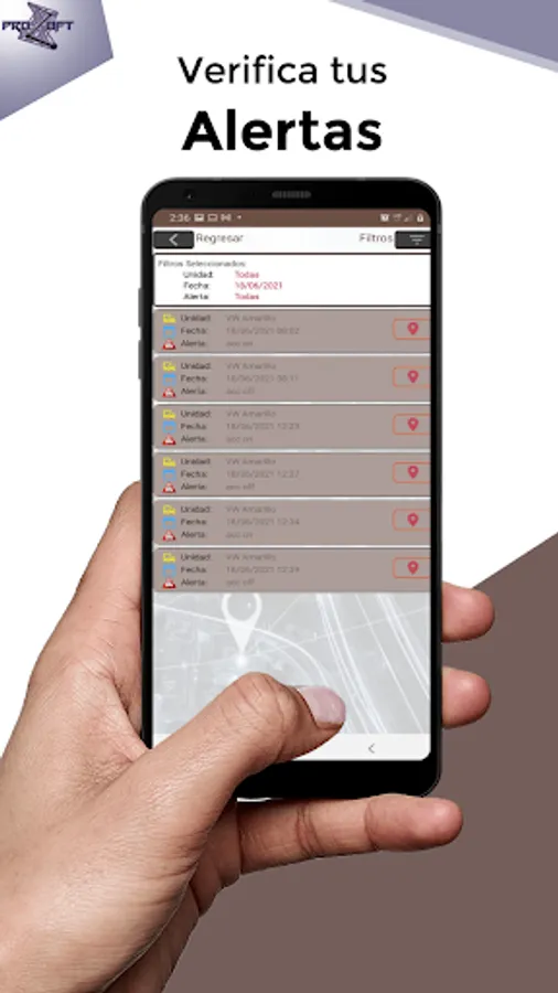 * Check and receive alerts from your units: on (acc on), off (acc off), power source disconnected, speeding, abandonment of geo fence, among others.