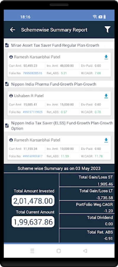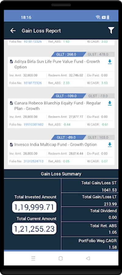 This report provides your Capital Gain loss details on MF investments.