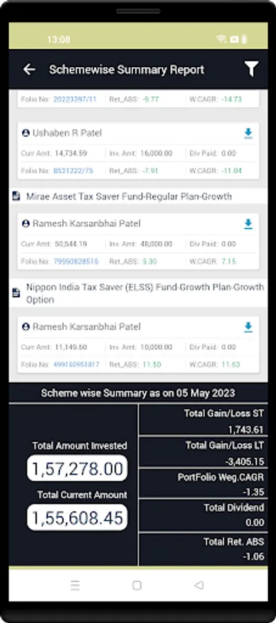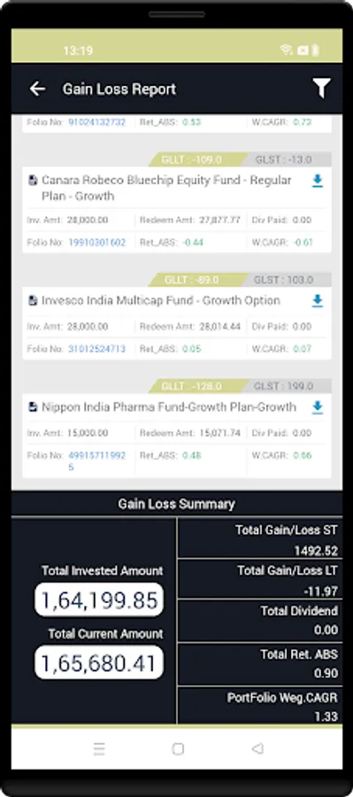 This report provides your Capital Gain loss details on MF investments.