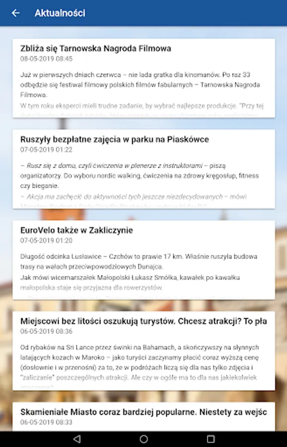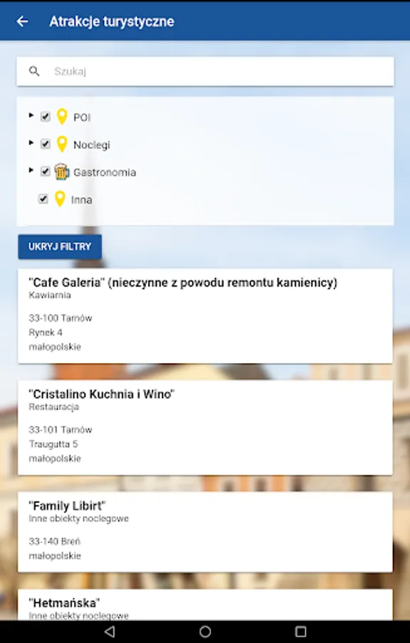 The guide supports sightseeing in the Tarnów region and learning about its history, proposes what to visit in the immediate area and enables the reproduction of multimedia materials about specific objects.