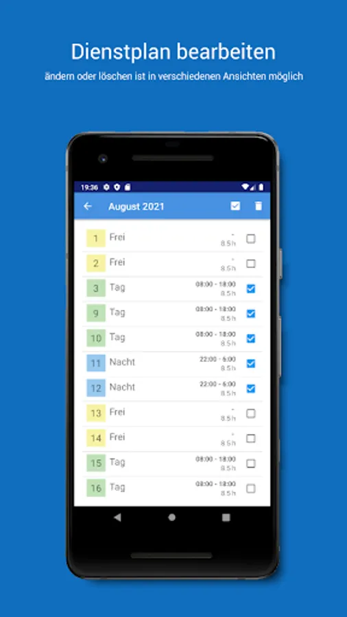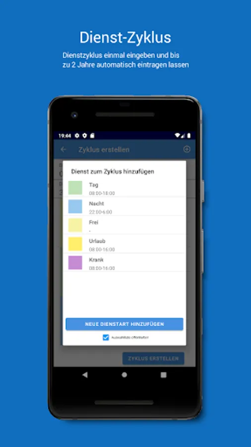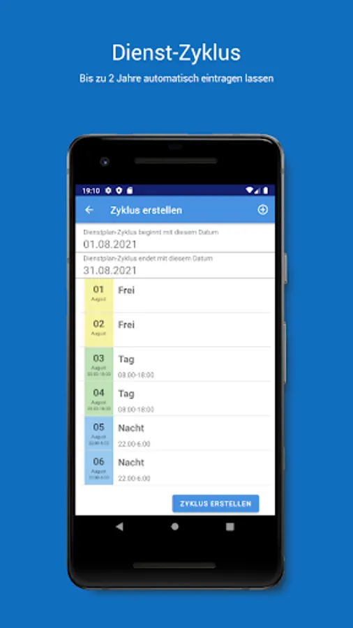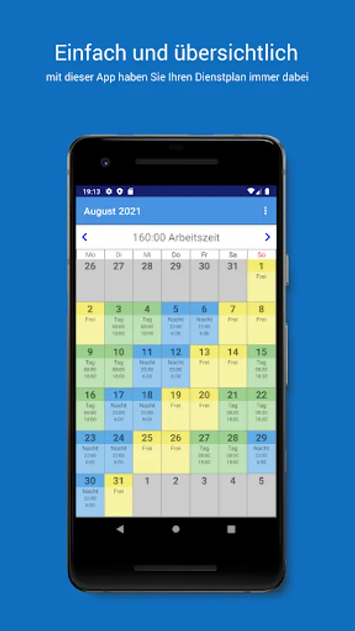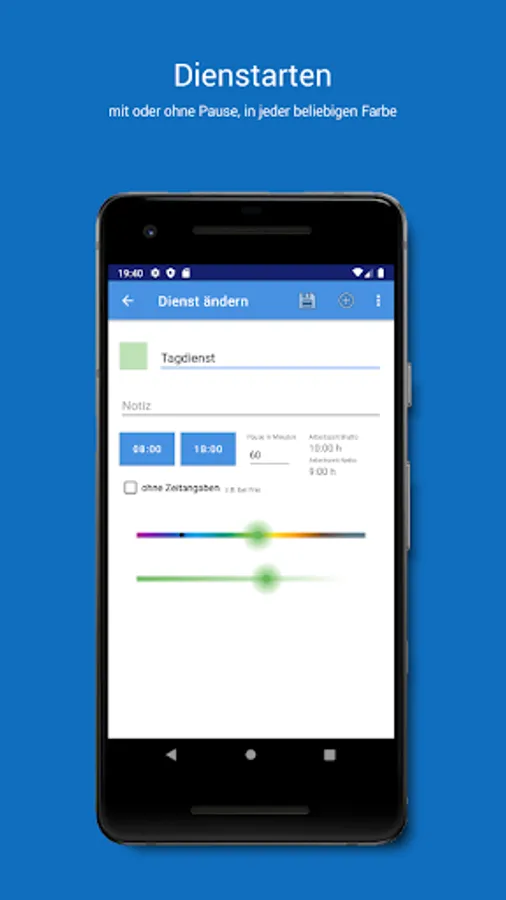 Create your duty templates according to your wishes with or without time information (e.g. late duty from 6:00 p.m. - 2:00 a.m.)