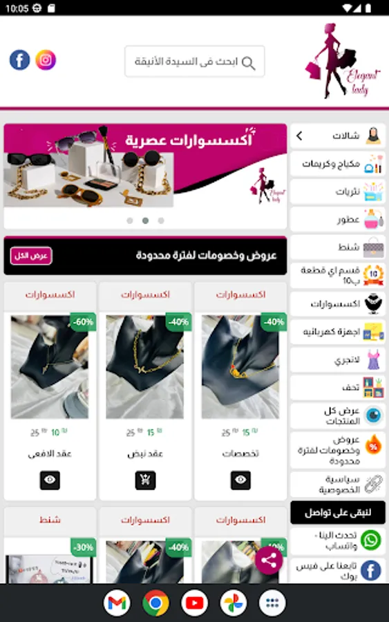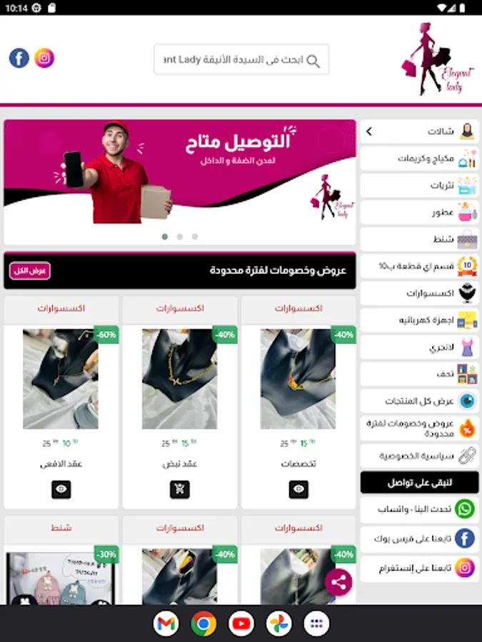 The Elegant Lady Store application allows you to have a unique shopping experience by displaying a wide variety of various products, where you can order the product to be delivered directly to your home address.