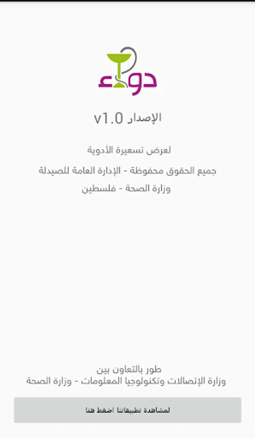 The application of a drug developed in collaboration between the Ministry of Communications and Information Technology and the Ministry of Health - Palestine to inform citizens on drug prices aphid