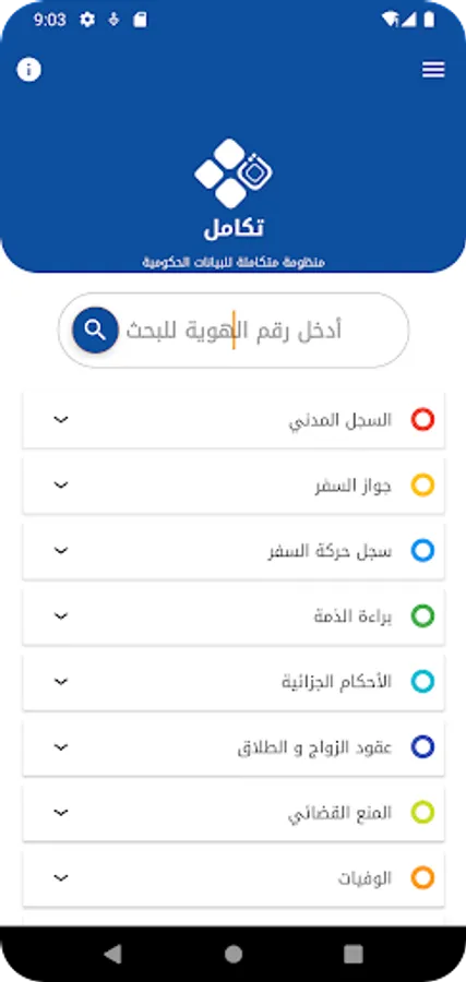 The Takamul application is one of the government applications and is considered an integrated platform for inquiring about government data. The Takamul application allows viewing all data relating to citizens and registered within the central government database. The application also takes into account the privacy of data and ensures that it is not misused through a set of limitations and restrictions associated with the accounts that Own access to and use of the Application.