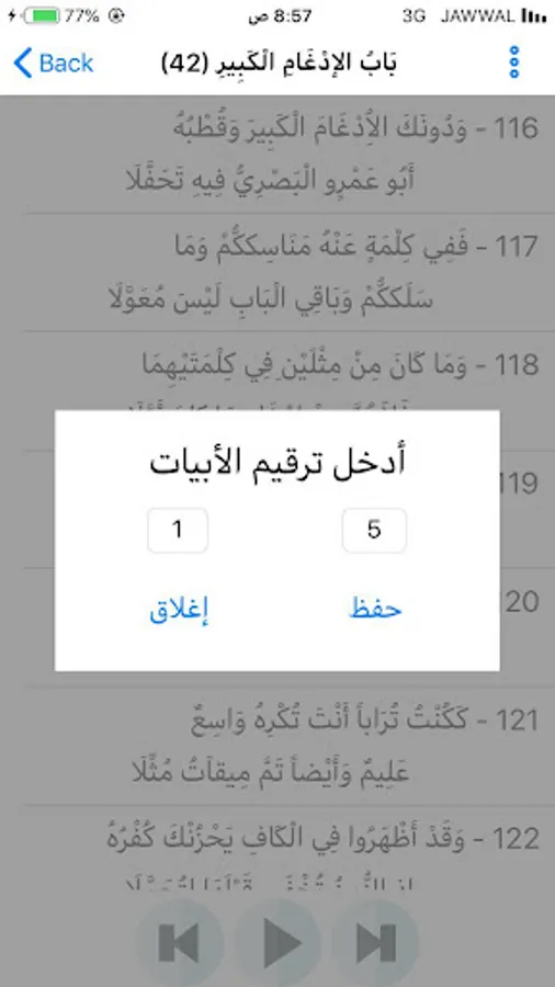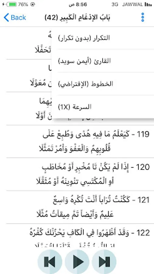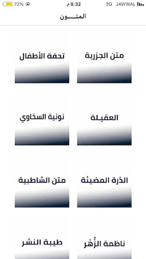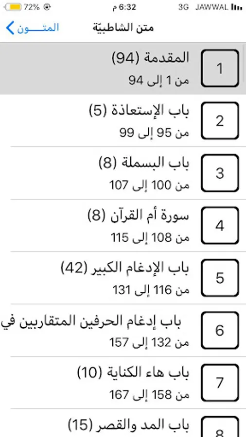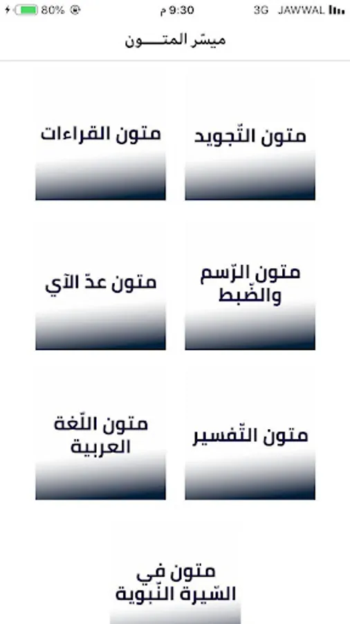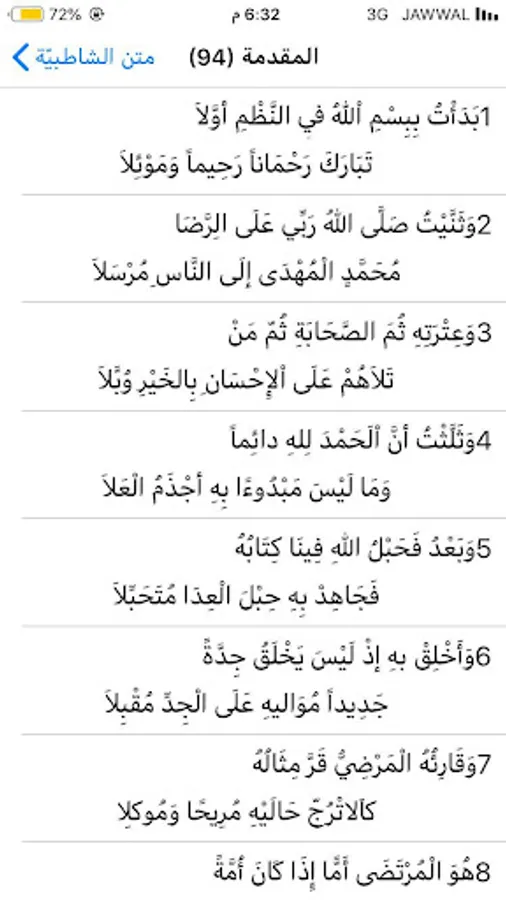 Comprehensive of the texts in intonation, readings, drawing, tuning, the promise of the ayat, the similarity, hadith science, belief, jurisprudence, Arabic language and interpretation.