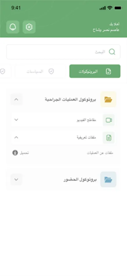 عرض ملفات سياسات وبروتوكولات وزارة الصحة