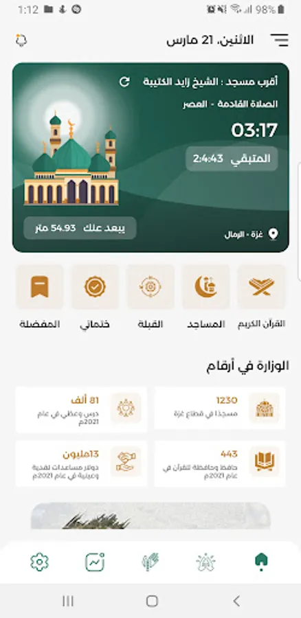 An advocacy application that is interested in offering religious services and matters related to the Muslim, where the application enables you to follow Friday sermons and advocacy lessons and know endowments available for rent or investment, in addition to that it enables parents to follow their children in memorization circles and the Diwan of Preservation, as well as the application displays the headquarters of Hajj and Umrah and the headquarters of committees The approved zakat, the application also allows the service of applying for a new endowment and enables everyone to submit complaints to the concerned authorities.