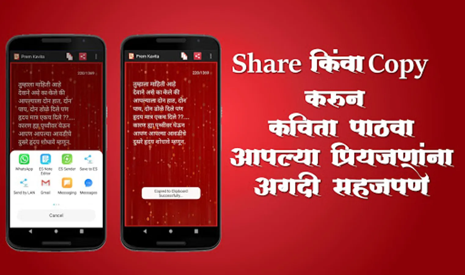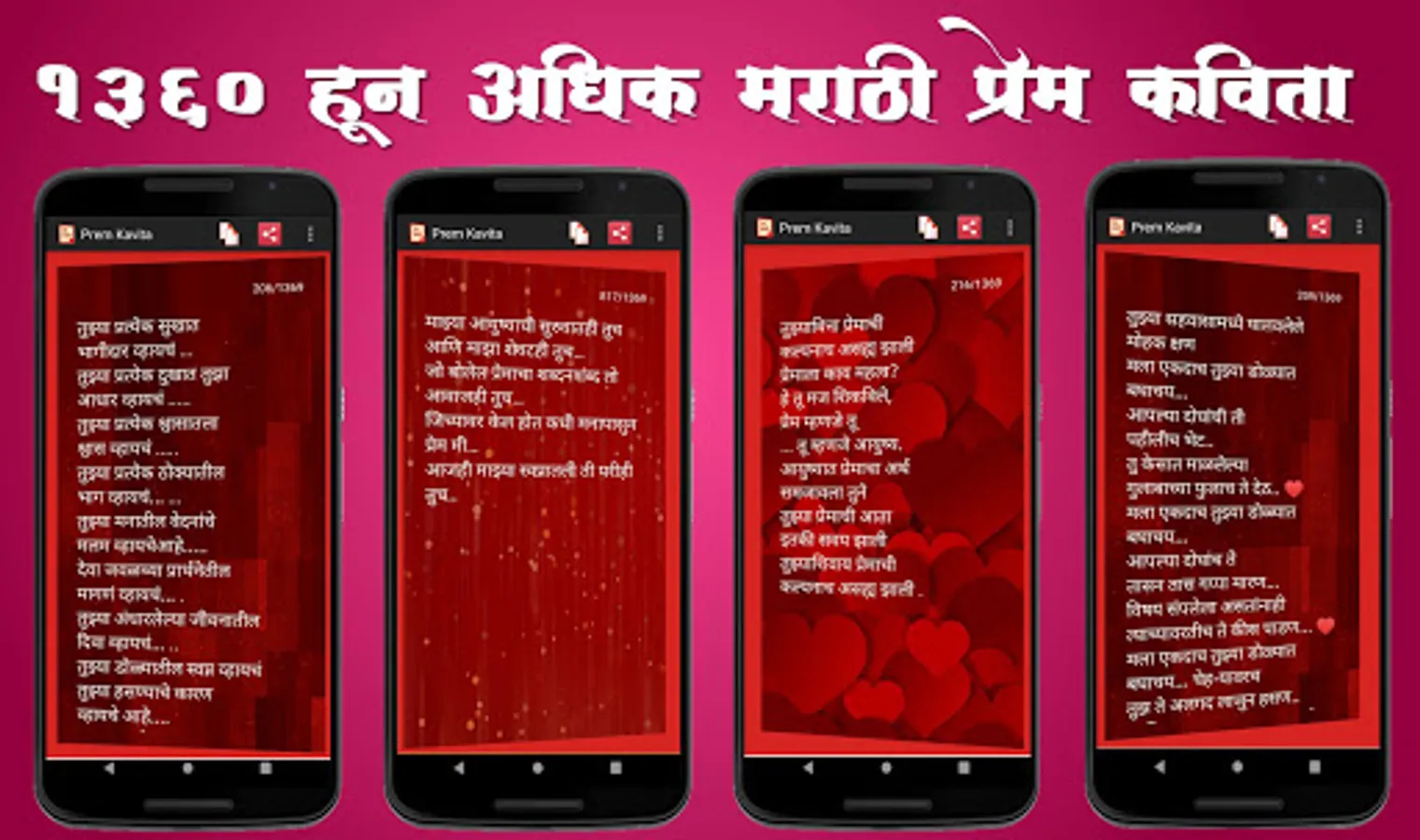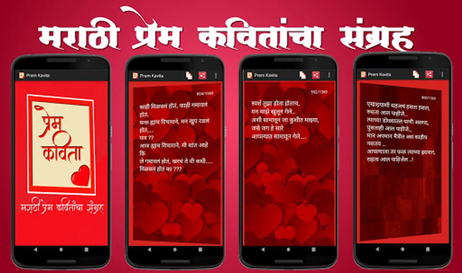Prem Kavita is an app which contains more than 1350+ marathi love poems and messages which you can share to your friends using social apps.
